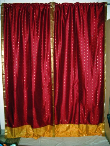 2 Red Art Silk Sari Drapes Curtains Panels Window Treatment Rod Pocket 96" Review
