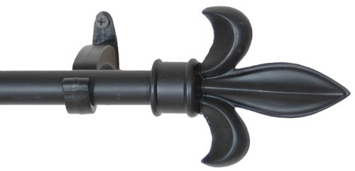 Celebrate the history and the beauty of Fluer de Lis with this black drapery curtain rod. The lovely drapery curtain rod extends 28-48 Inches. Hardware Included 2 Brackets Included Metal body for drapery curtain rod and finials Powder Coated platting for Durability Tested in Lab for quality assurance Drapery Curtain Rod diameter : 3/4 Inch
